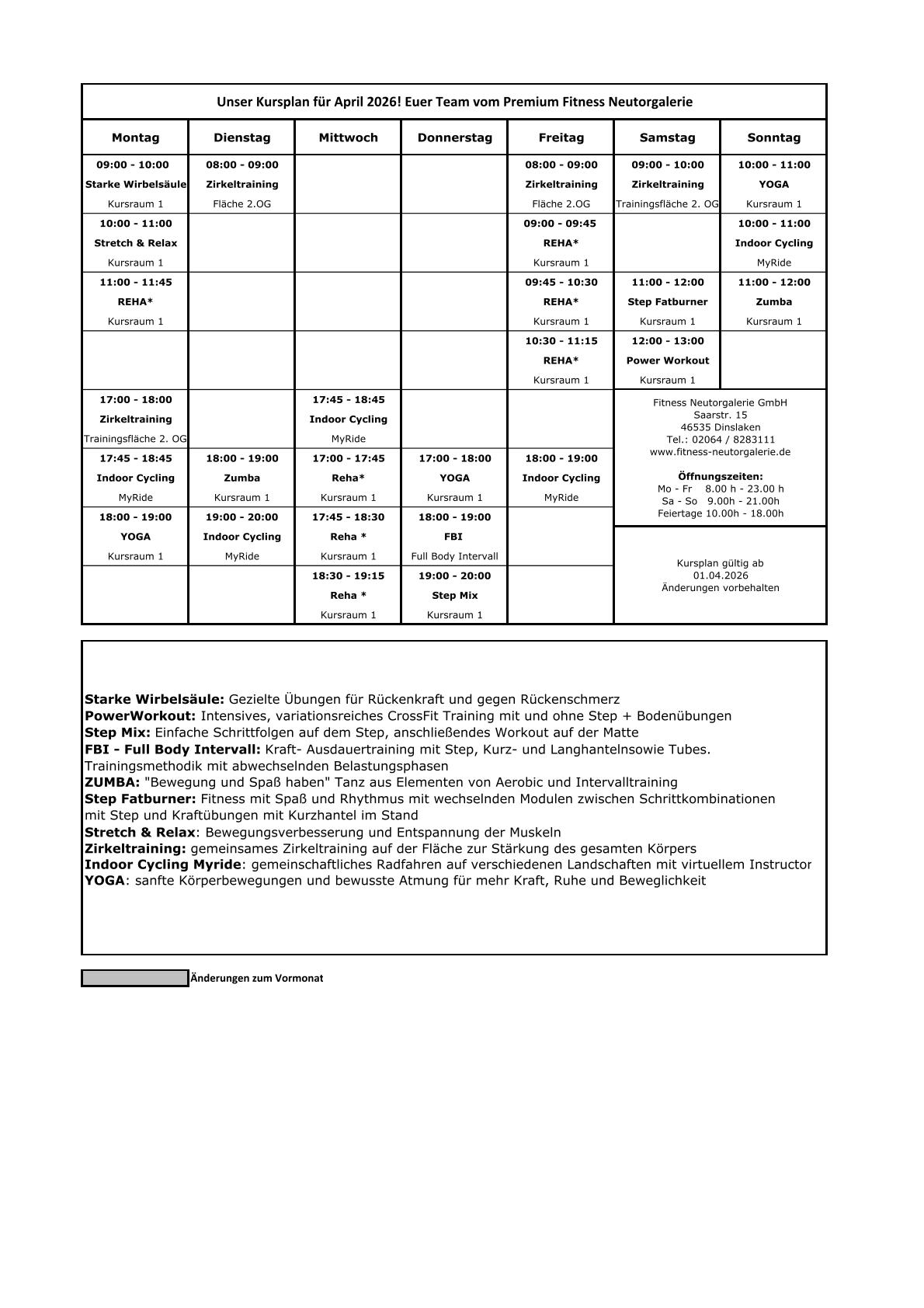 Kursausfall: Liebe Mitglieder, urlaubsbedingt fallen folgende Kurse zwischen